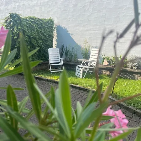 Die 50 m^2 große Ferienwohnung Theisen bietet einen Blick auf den Garten und liegt nur 17 Fußminuten vom Mittelalterlichen Marktplatz entfernt